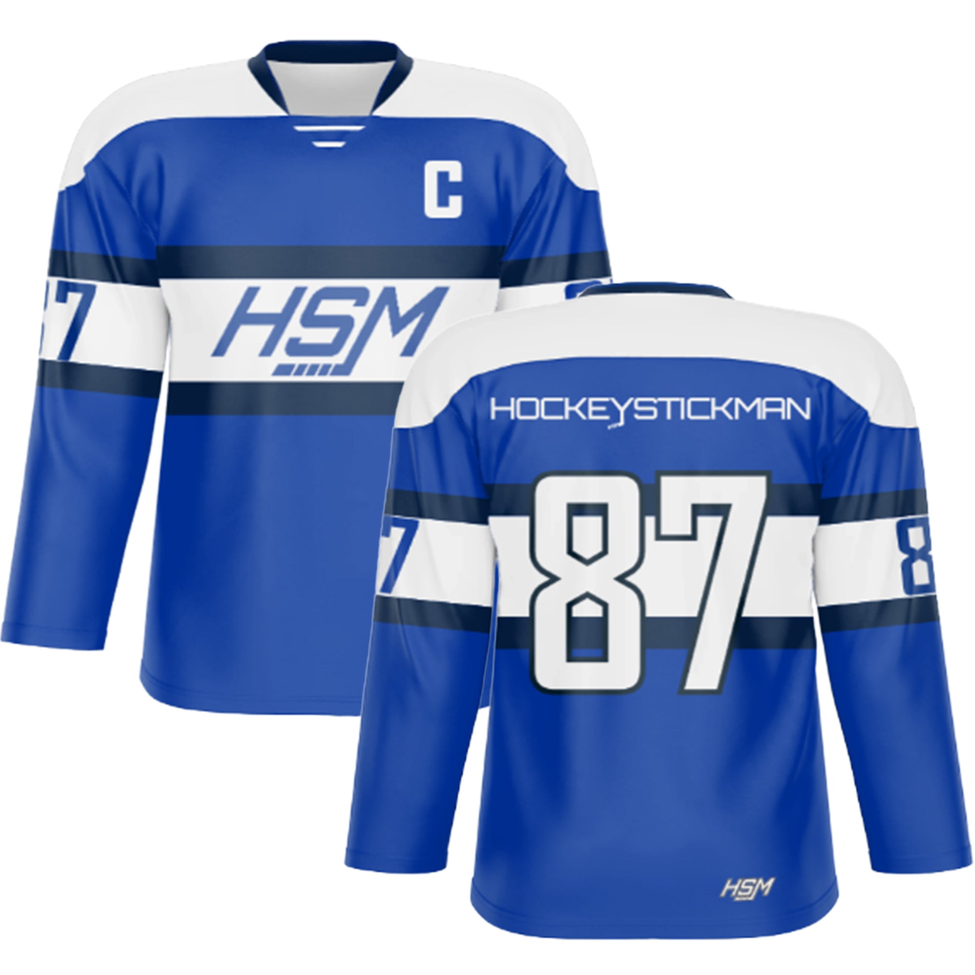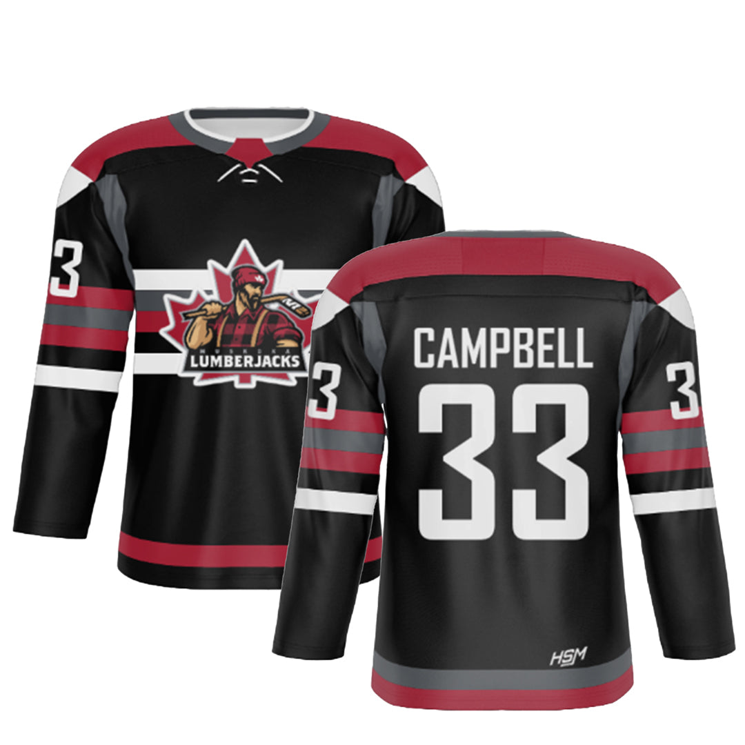Cut and Sew + Tackle Twill jerseys are a more traditional, pro-style option. Each panel is stitched together, and the names and numbers are made from layered twill and sewn onto the jersey—just like what NHL teams wear.
